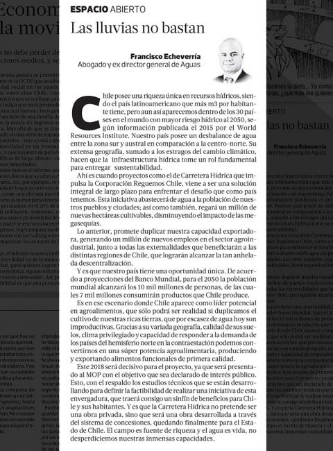 Chile posee una riqueza única en recursos hídricos, siendo el país latinoamericano que más m3 por habitante tiene, pero...